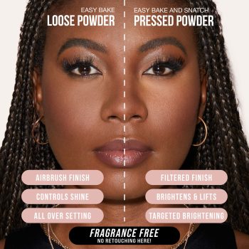 A dusting of Easy Bake leaves a translucent veil on the skin creating a matte finish that controls shine, color corrects, and highlights the different contours of the face without creasing or fading – the ultimate step to an airbrushed finish.