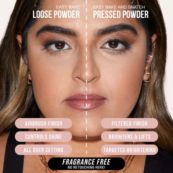 Easy Bake’s weightless texture blends with any prior product to keep makeup in place without flashback; this loose powder absorbs shine, has a natural finish, and has major staying power. Available in 7 shades, you can choose a shade that matches your foundation for all over setting, or a lighter shade to make your undereye pop!