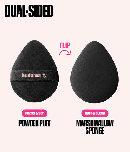 puff side presses and sets your makeup. The teardrop shape allows both full-face coverage