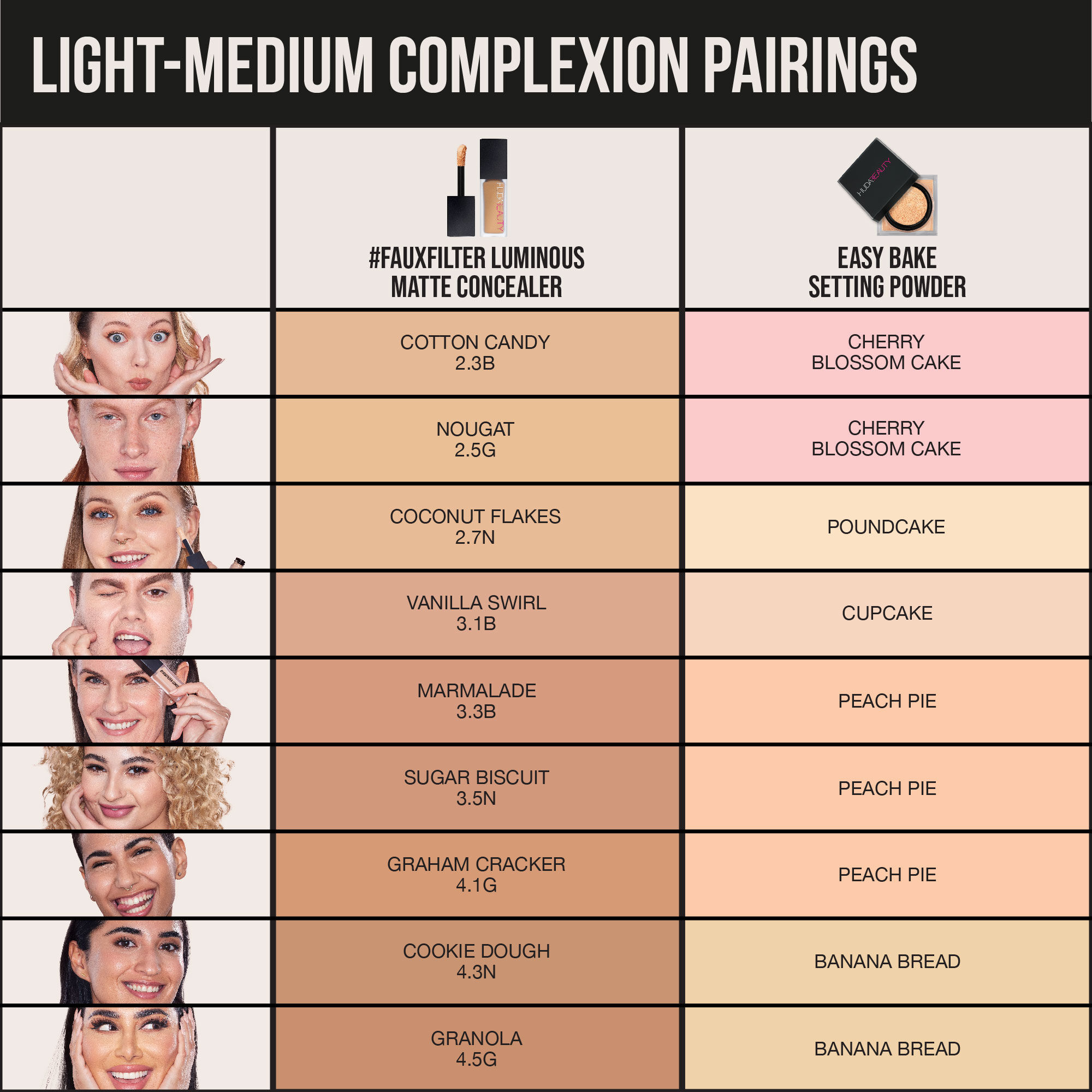 This kit includes the #FAUXFILTER Color Corrector, the #FauxFilter Luminous Matte Concealer, the full size Easy Bake Loose Baking & Setting Powder.