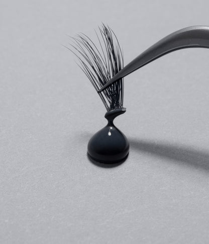 - Using tweezers, tap the base of the lash cluster into the glue, then apply the lash along your lash line